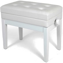 Høy- og senkbar pianopall i hvit finish med notlagring!