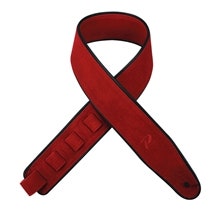 Komfortabel og justerbar gitarreim i vevd polyester, rød med sorte skinnender