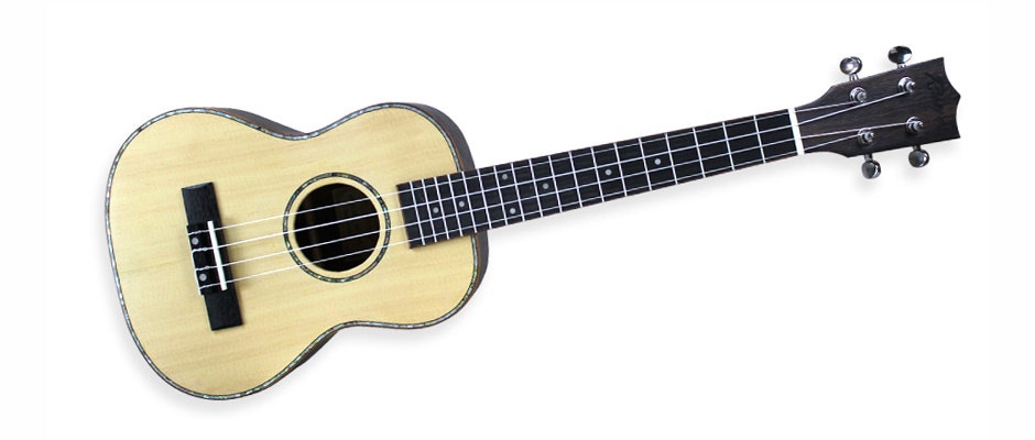 Ukulele av Grand Concert-modell, større kropp, länge skala, solitt granlock.