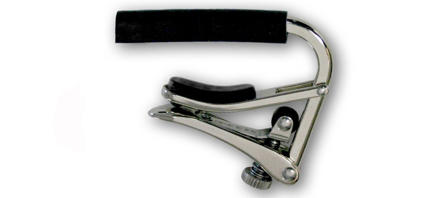 I motsetning til andre Dobro capos som bare festes på strengene, klamrer Shubb seg solidt fast til nakkep...