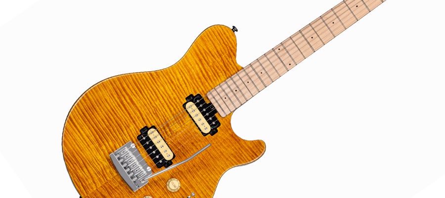 El-gitar, basswood-kropp, roasted lønnehals, gripebrett i palisander, humbuckers, aktiv boost, låsemekanikk,...