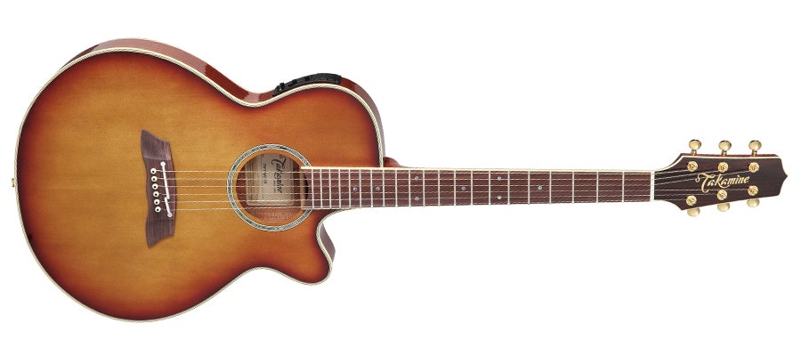 Stålsträngad akustisk gitarr med solitt cederlock og Takamines klassiske NEX-kropp.