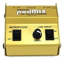 Passiv mikser som kombinerer en mikrofon med en stereo lydkilde, linjenivå